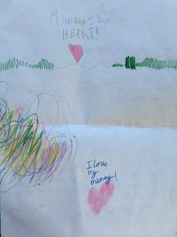 Dakota-Skye had to prepare a “show and tell” for school, exhibiting something to her peers that was important to her. My incredible eight-year-old didn’t just go into her room and fish out any old tat she could lay her hands on, no she actually crafted something…a book with four chapters, no less, entitled “Mummy’s Big Heart”, telling the story of my attack and time spent in hospital. “Everyone asked me lots of questions,” she told me afterwards. My personal favourite: “Did she die?” Kids…adorable creatures.